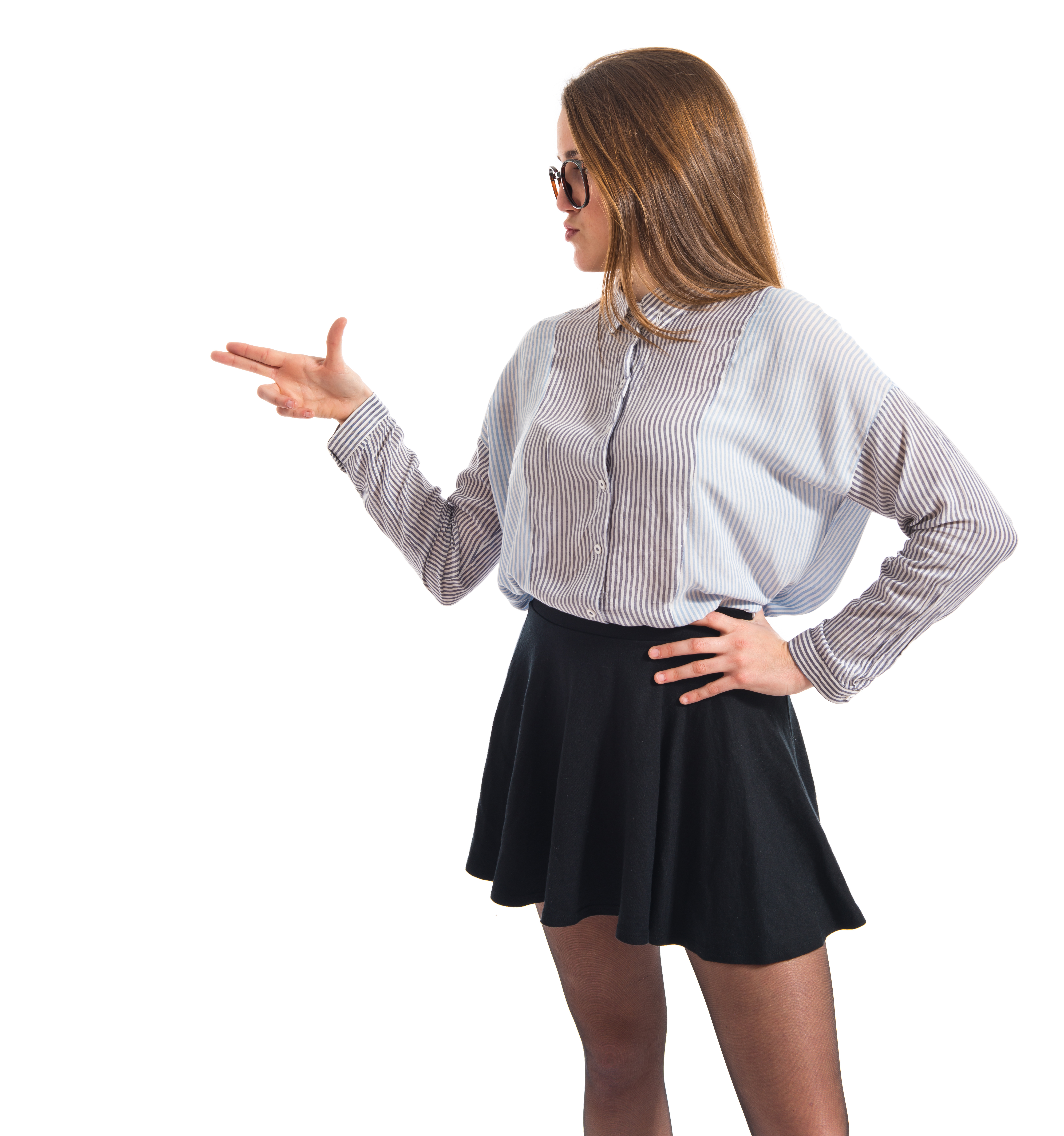 Posh girl making gun gesture